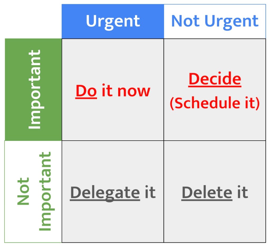 I’m dipping into productivity again, but consider the Eisenhower matrix: